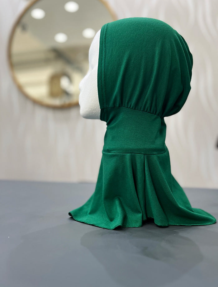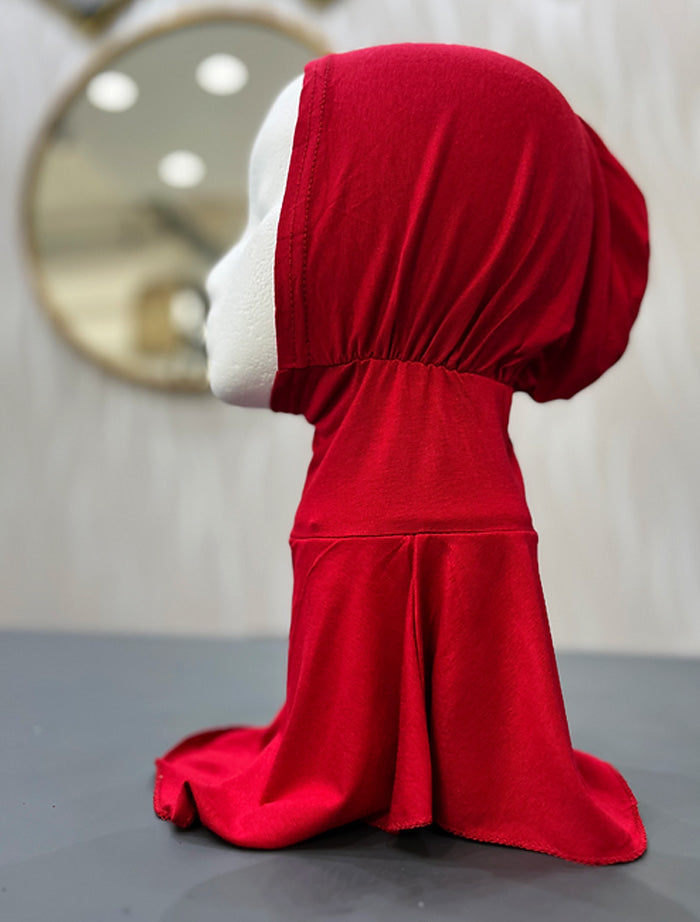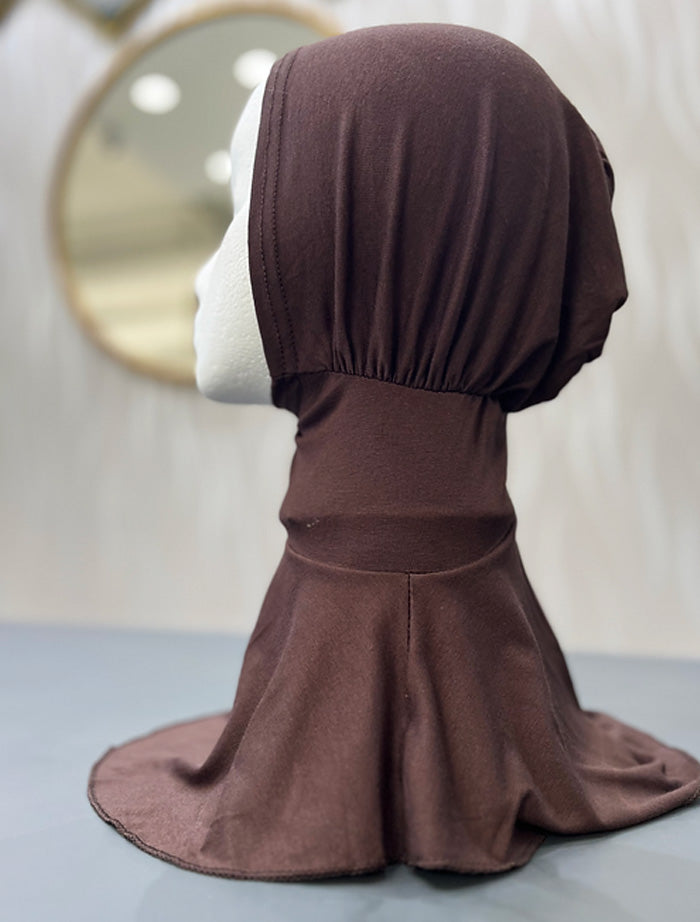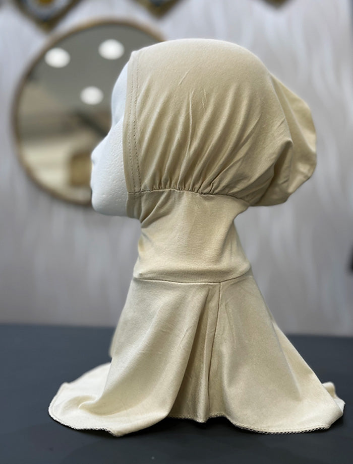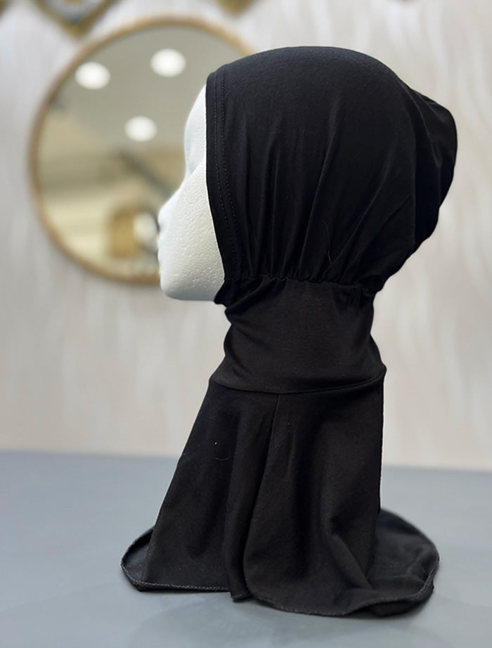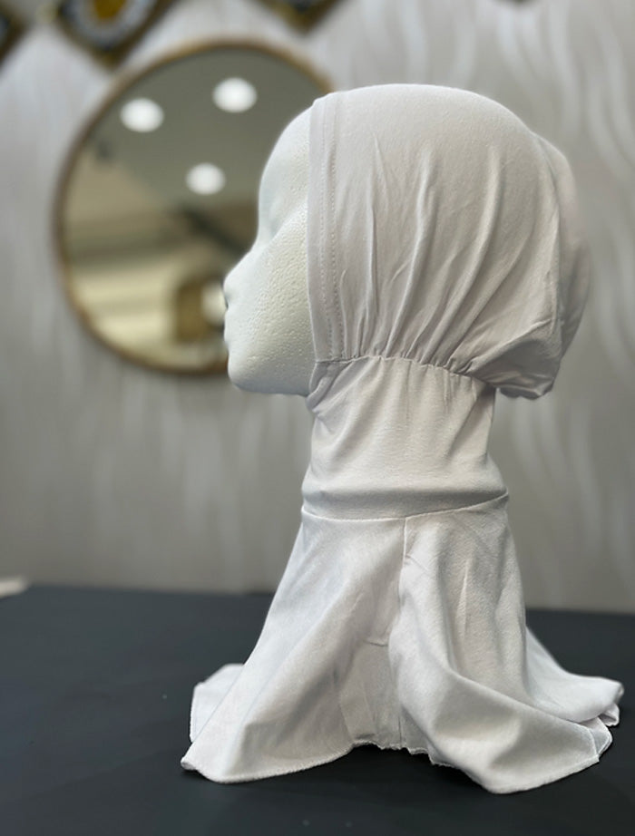 Easy uses, all in one undercap that covers the neck, ears and head. This provides extra modesty and coverage whilst being comfortable and easy to wear.